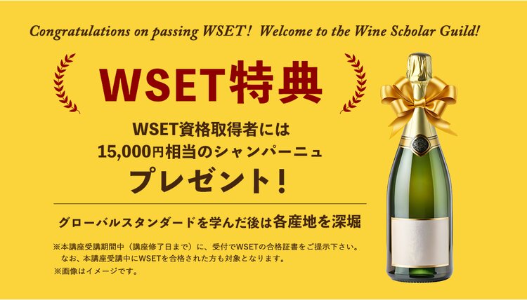 特典:WSET Level2 Wines(またはLevel3) 資格取得者には、15,000円相当のシャンパーニュをプレゼント!